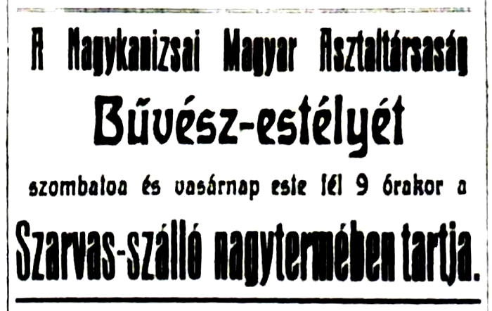 1893-tól az új épületben tartotta összejöveteleit az 1890-ben alakult Nagykanizsai Kossuth Lajos Magyar Asztaltársaság.