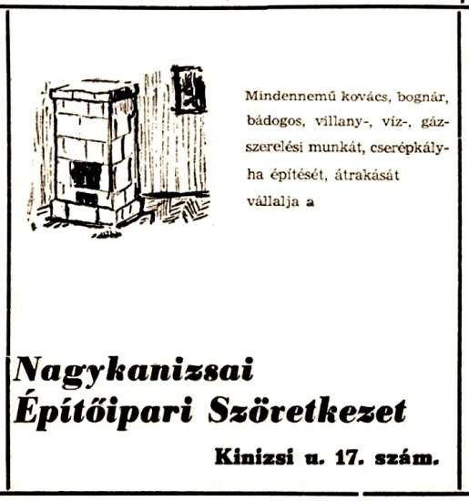 1950 körül pedig a Nagykanizsai Építőipari Szövetkezet vette birtokába az ingatlant. Ide került központja, de fűrészelő részlege is. Ennek igencsak méretes gépei a színekben kaptak helyet.
