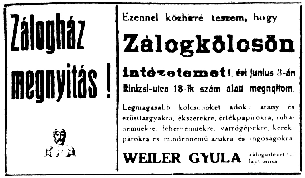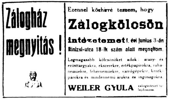 •Talán az özvegy anyagi nehézségei miatt is létesíthette épp itt zálogházát Weiler Gyula Mór.