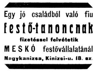 (Ekkor már szobafestő fia, József tevékenykedett itt. Ő 1931-ben hunyt el. Negyvenkét esztendős volt.)