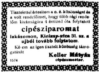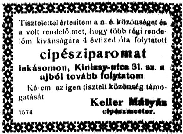 1883-ban már a Fő út 7. szám alatt található meg a cipész