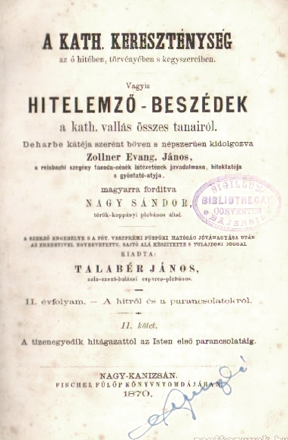 Ebben hunyt el Talabér János (1825-1899) pap és költő. 1861-ben érte el, hogy Zalaszentbalázsra kerüljön plébánosnak. Így akart egy olyan város szomszédságába jutni, amelyben volt irodalmi élet.