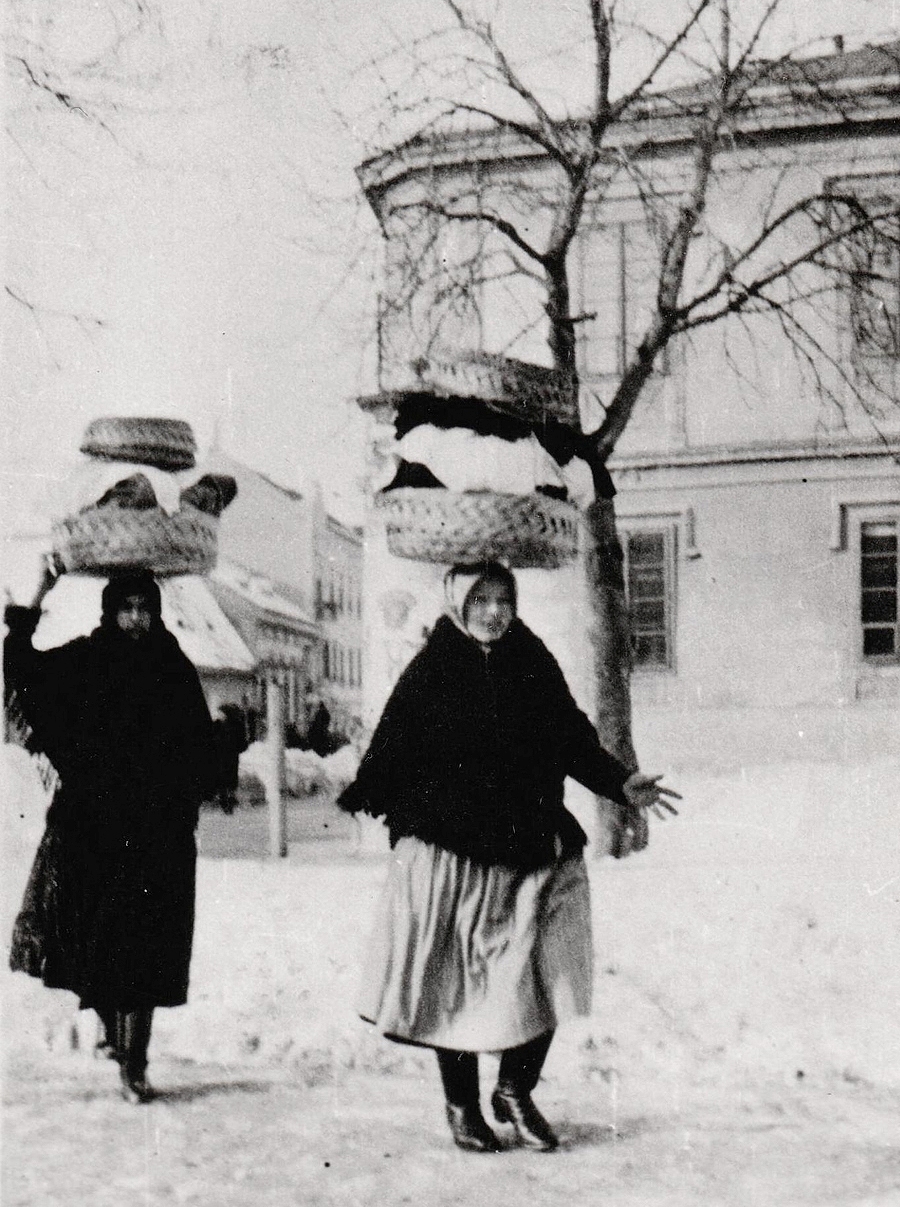 Megpróbáltatásaikat a legalsó véka alá helyezett, kendőkből font, gyűrű alakú párna (ez volt a „tekercs”) alig csökkentette.