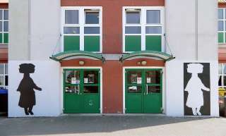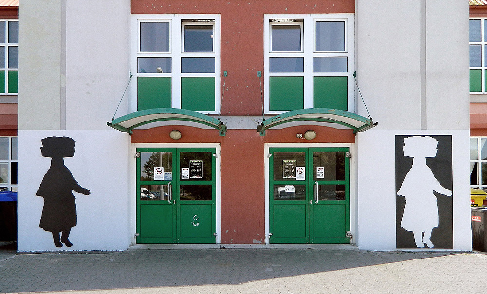 A felvétel alapján készült 2014-ben „A piacozó” acél árnyképe és annak negatívja a vásárcsarnok nyugati oldalára