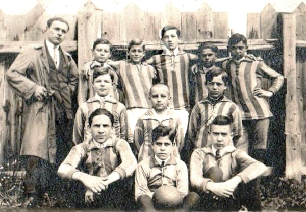 A visszaemlékezés szerzője (balról a második fiú az álló sorban) már bőrlabda mögött az 1920-as évek közepén
