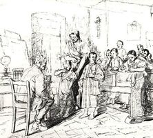„Kis pulyák, kis csibék, arany tollú, sárga pelyhes kicsi nép, anyja mellett szökdécselve, csipogatva csipegetve, húsz piciny kerek személyke félve lép. A március kicsalta őket, télszalasztó, rügydagasztó, kéjfakasztó édes ég.”