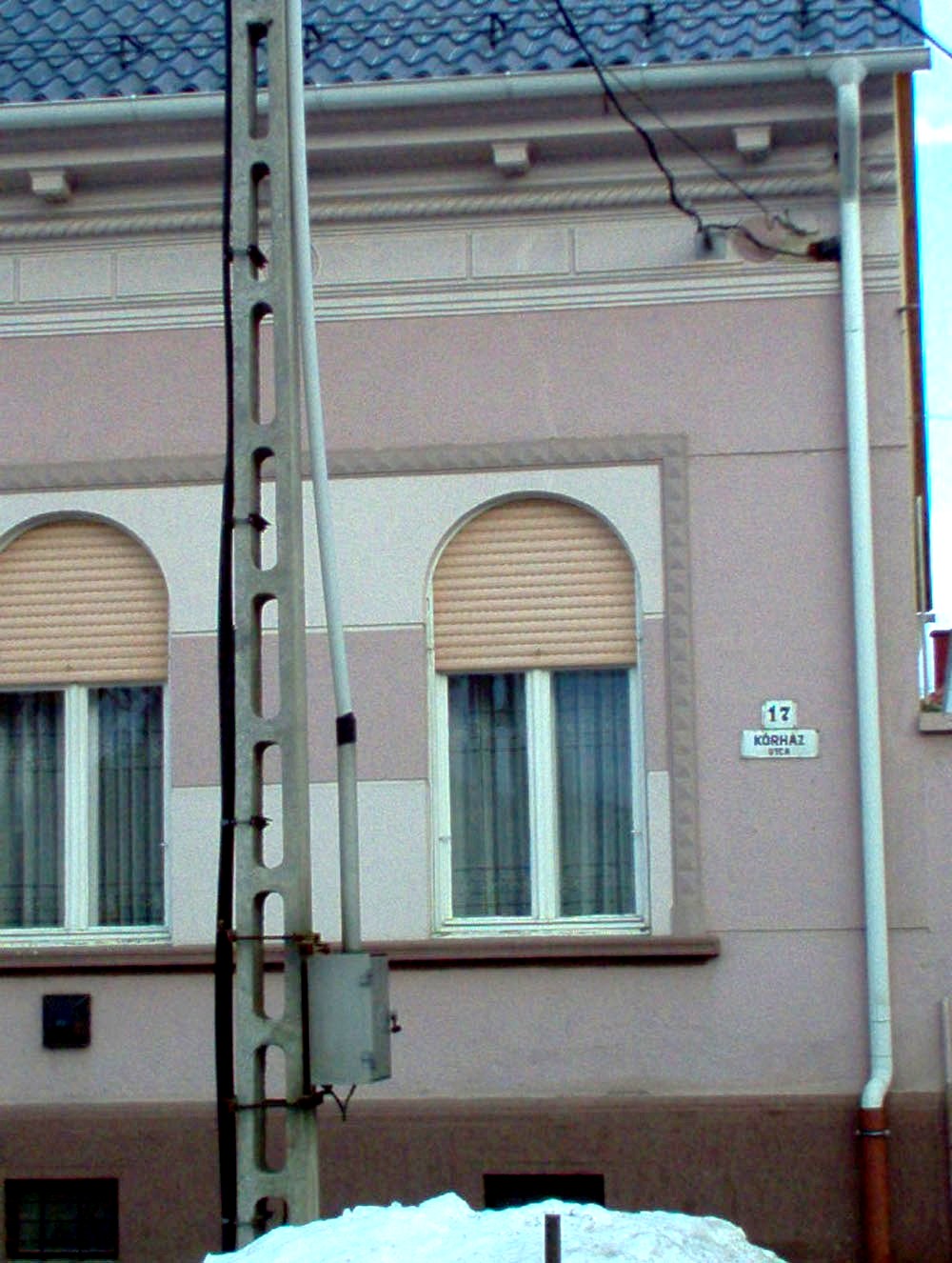 •A századfordulón a házsornak a Kórház utcához tartozó utolsó épülete a 15. számú telken állt. (Déli szomszédja már a Kossuth tér részének számított, 21. házszámmal.)