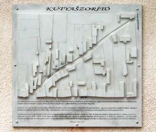 A „Kutyaszorító” emlékét őrző domborműves térkép a 9. számú ház falán