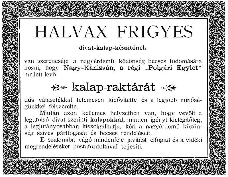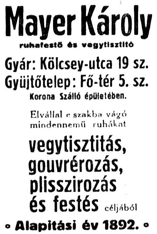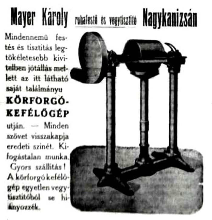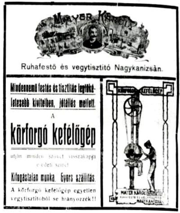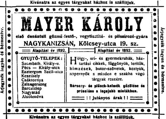 •1892-ben, az akkor Ábrahám Zsiga tulajdonában lévő házat kibérelte a Kanizsára telepedő Mayer Károly kékfestő.