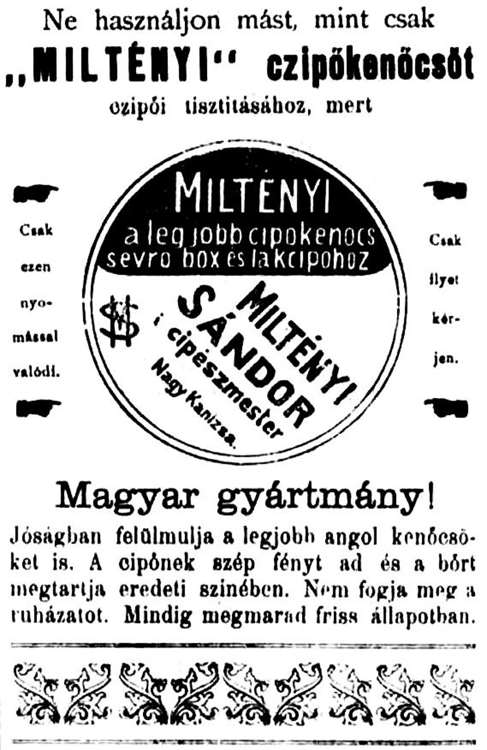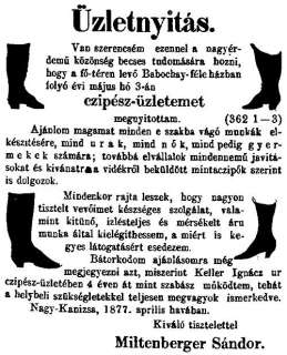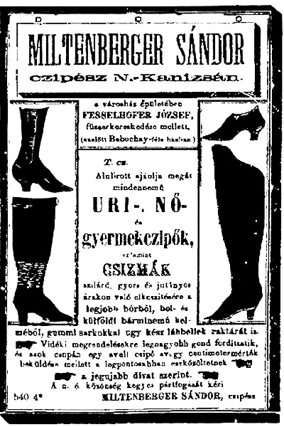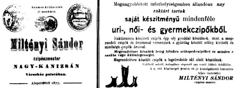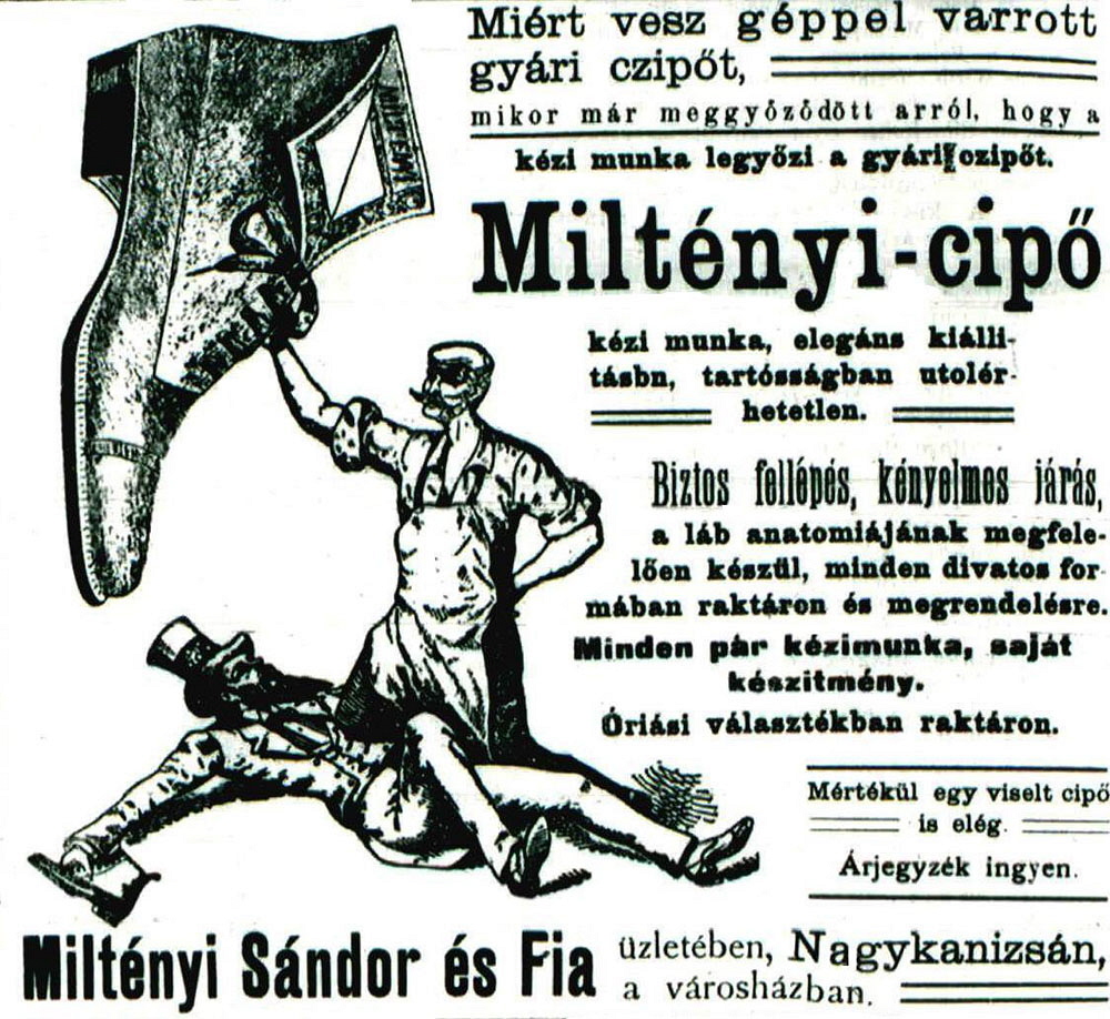 Tőle veje, Miltényi (1885 előtt Miltenberger) Sándor cipész örökölte, aki 1877-ben alapította műhelyét és üzletét.