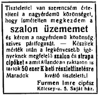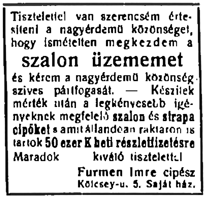 •Az 5. számú ingatlan az első világháború után Furmen Imre cipészmester tulajdonába került. Egykori háza már nem létezik.