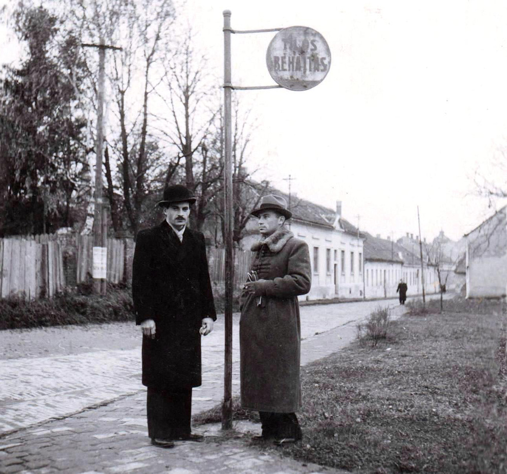 (A két úr mögött a Kölcsey utca 16. számú ház. Már nem áll.)