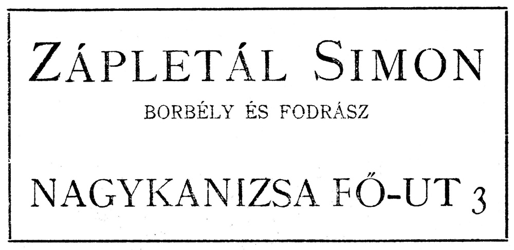 •A 17. szám alatt állt Zapletál Ignác borbélymester két kis háza. A házakat és az 1870 tájékán alapított vállalkozást fia, Simon örökölte.