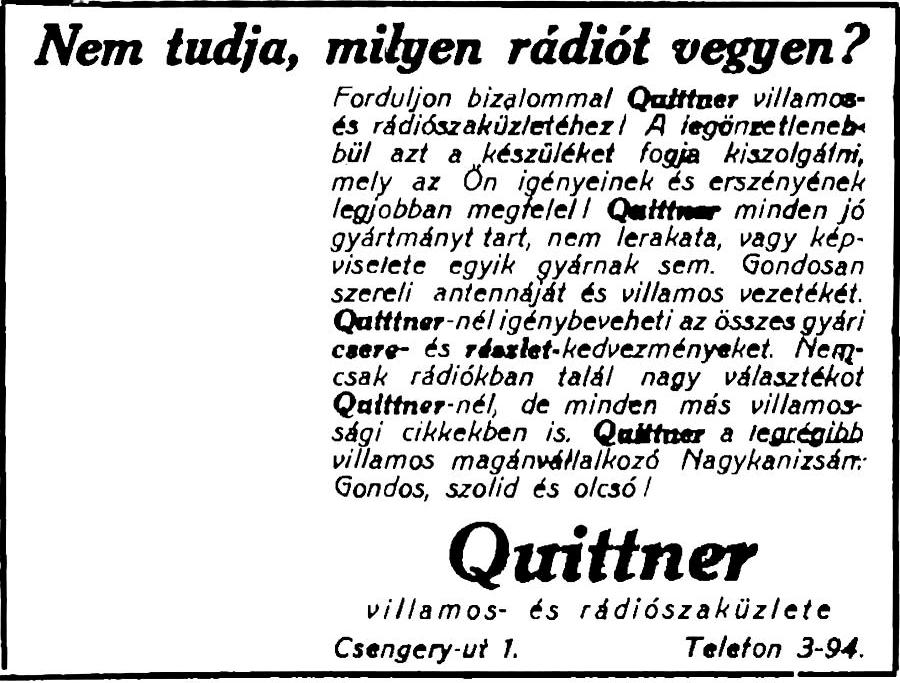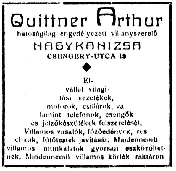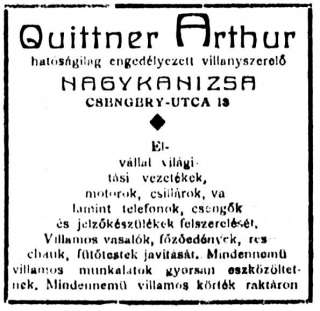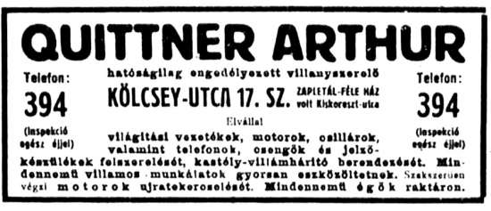 •1922-től itt volt Quittner Arthur (1890 vagy 1892-1944) műhelye. Addig a Csengery út 13. szám alatt tevékenykedett.