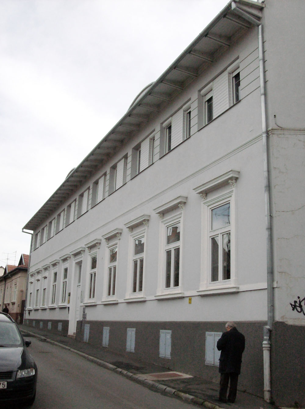 •A helyén állt épület 1733-ban épült, 1919-ben összeomlott. Pedig, mint Kardos Ferenc levéltári kutatásai eredményeként tudhatjuk, 1886-ban akkori tulajdonosai, a Novakovics nővérek (Novakovics József kereskedő két leánya) a fazsindelyes, rendkívül alacsony ház felső részét lebontatták és egy méterrel megnöveltették belmagasságát.