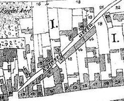 •Korábban a 19. szám alatt egy keskeny, de északra rendkívül hosszan elnyúló épület (csaknem 35 méter hosszú volt) helyezkedett el.