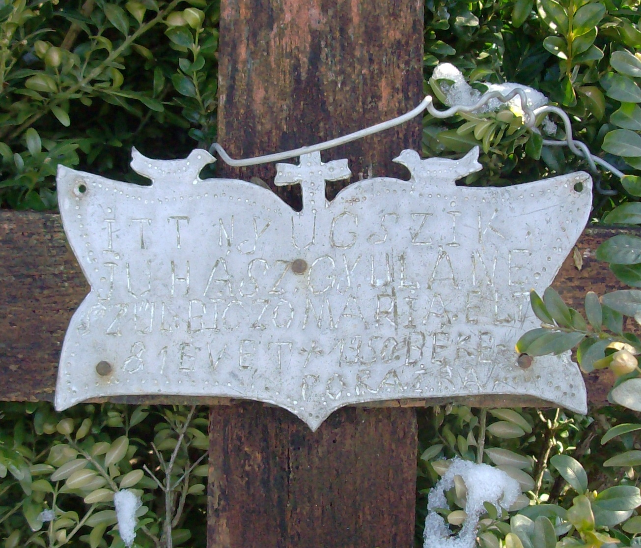 1950-nel záródóan a fejfák egy részére házilag készített tábla került. Az elhunytak adatait is tartalmazó fém alkotások kedvesen esetlenek és ugyanazon kéz munkáinak látszanak.
