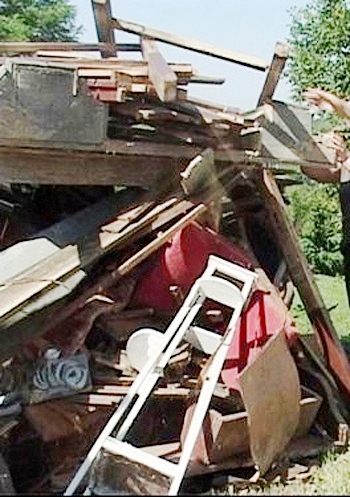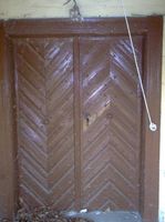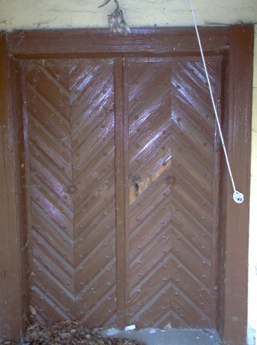 (A 2010-es helyreállítákor felső rész durván megfelelő hosszúságúra fűrészelt, háttérként használt deszkáin a szürke festék alól egy régi festmény nyomai kerültek elő. Akár a hajdani oltárkép maradványai is lehettek.)