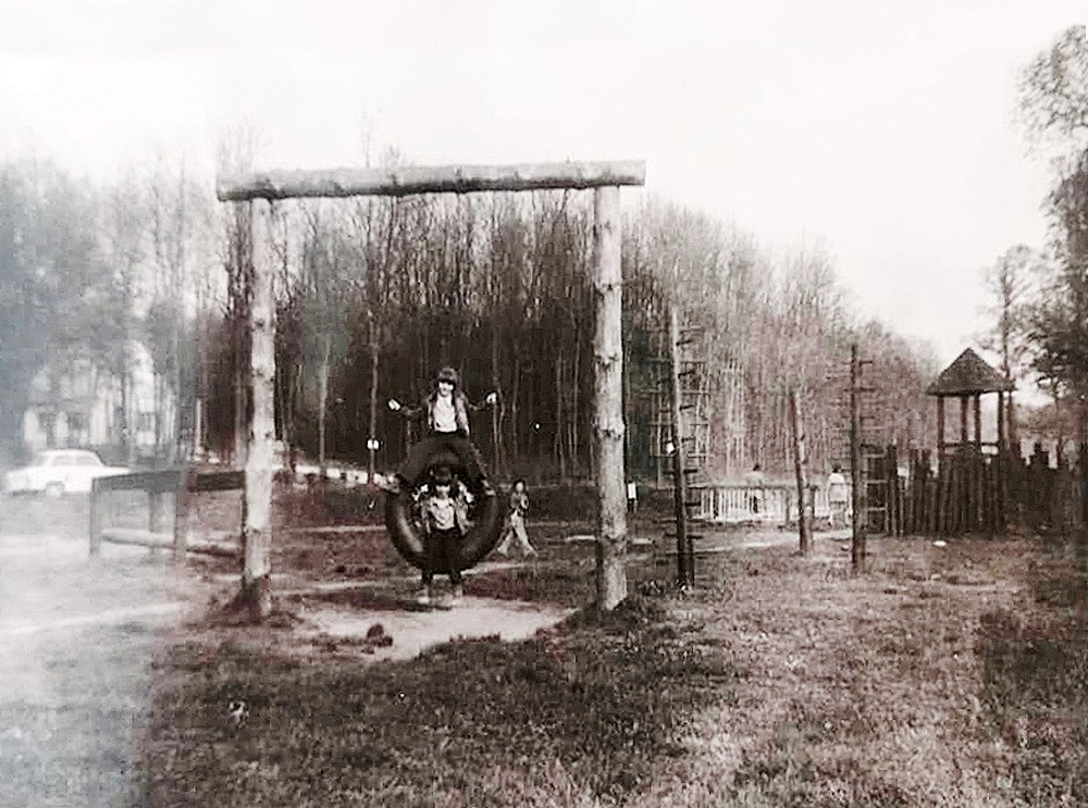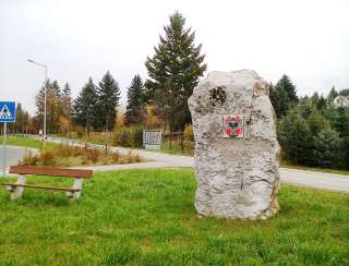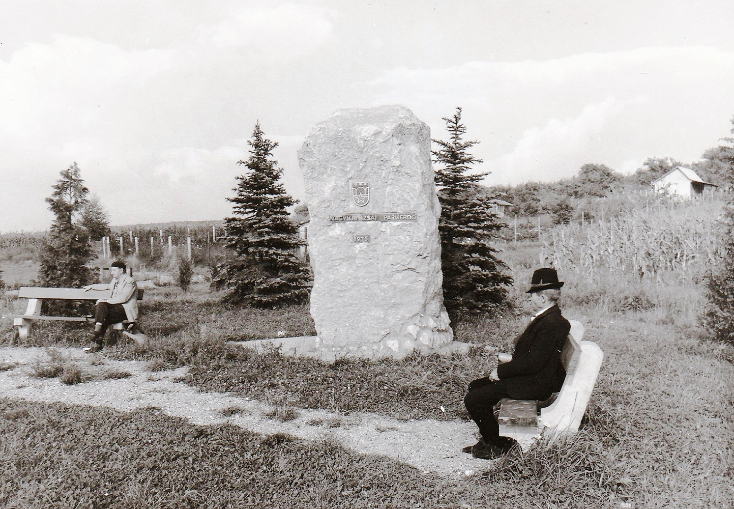 A parkerdő bejárati emlékköve az 1970-es évek végén és a 2017-ben kialakított változata