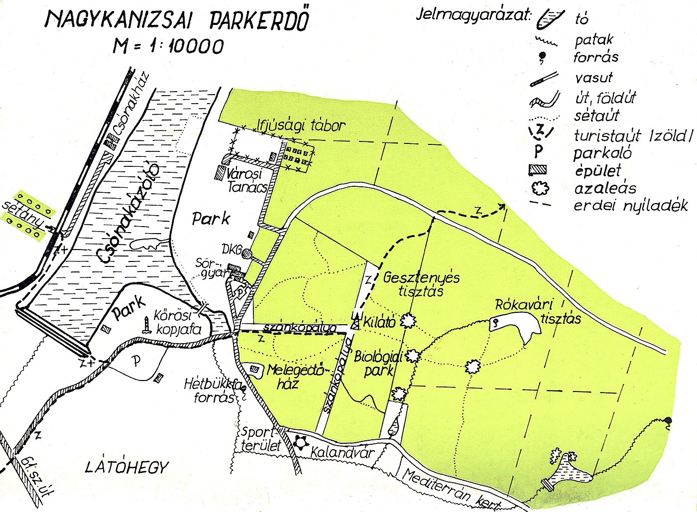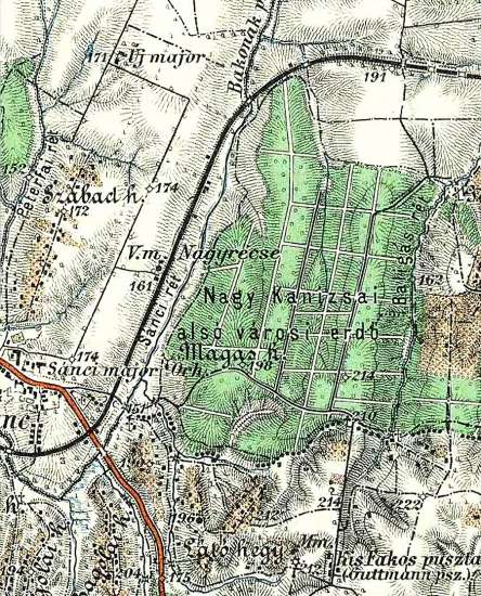 (A bal alsó sarokban a kaposvári országút. Balra feljebb az erdőőr háza: Őrh.)