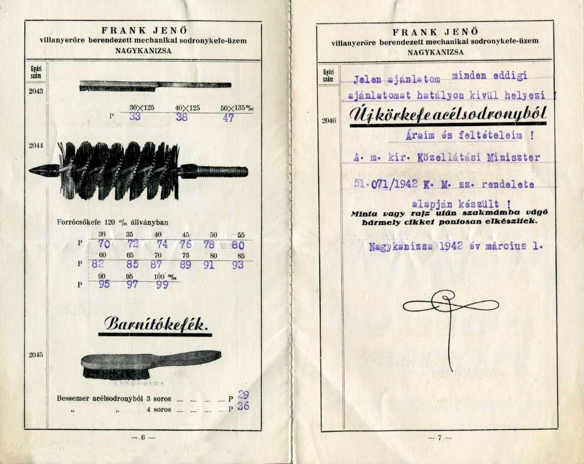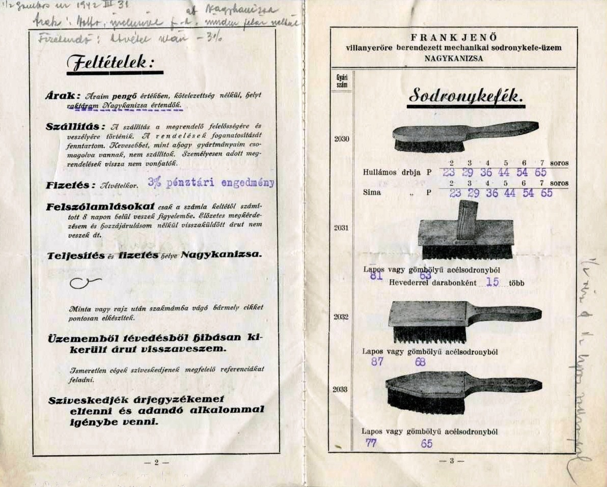 A drótkefék árjegyzéke 1942-ből