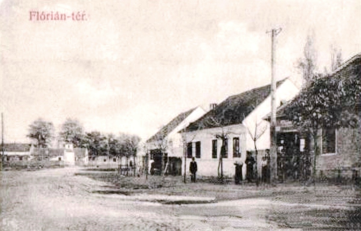 (A kép jobb szélén a 14. számú ház. Mellette: Szent Flórián tér 13. és 12.)
