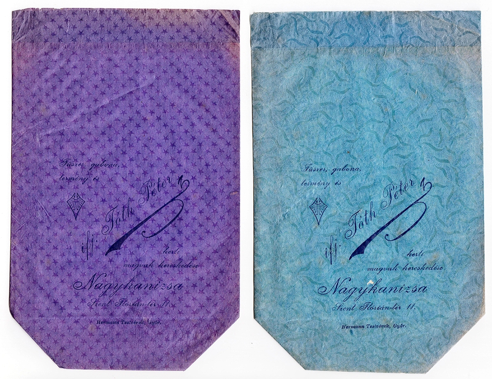 Ifj. Tóth Péter (1902-ben született) üzletének talpas zacskói