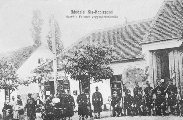 (Balra a helyi Keresztény Fogyasztási Szövetkezet üzlete a tér 14. szám alatti házában.)