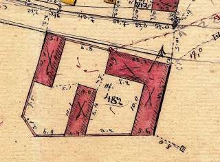 Balra az épület sarokrésze (keletről nézve) az 1920-as vagy 1930-as években