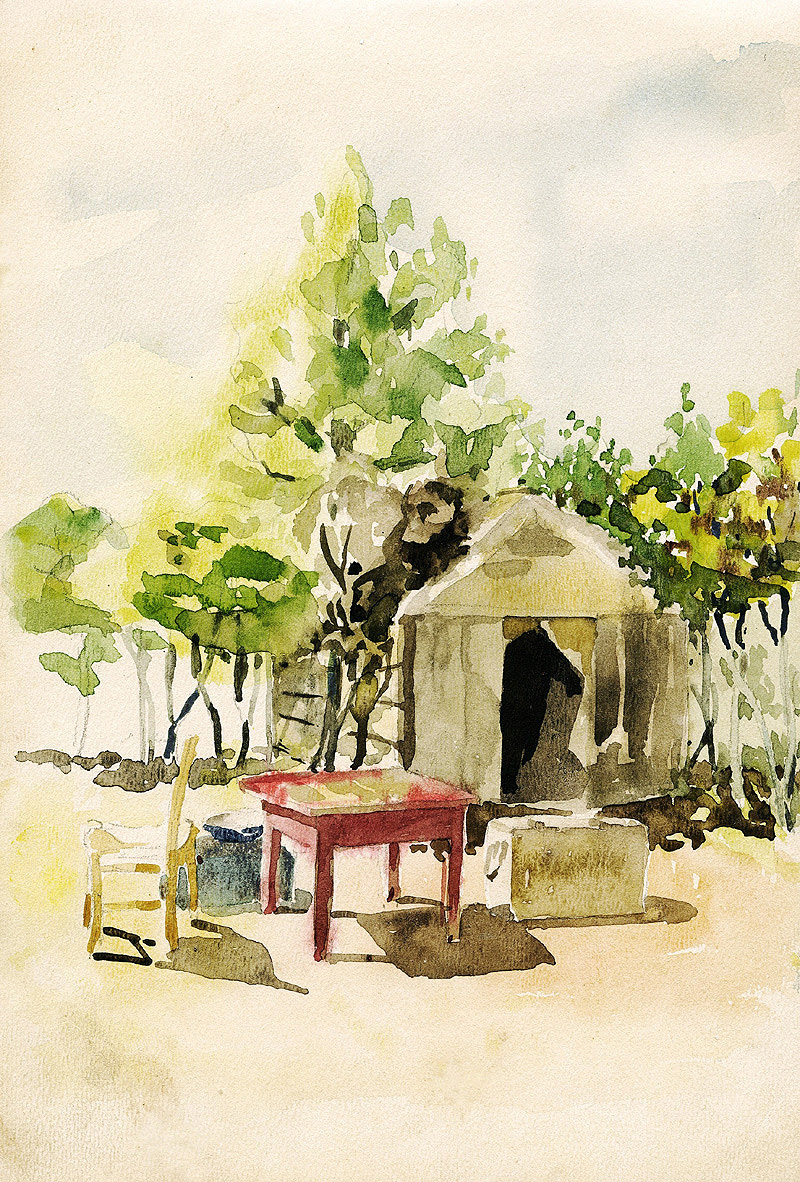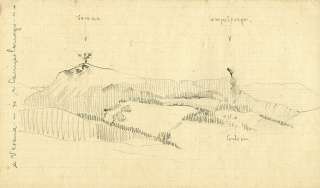 Ifjabb Kalmár Zoltán jóvoltából (munkám más helyein is szerepelnek tőle származó képek) közzétehetem itt a napló néhány oldalát és édesapja ottani rajzaiból kettőt.