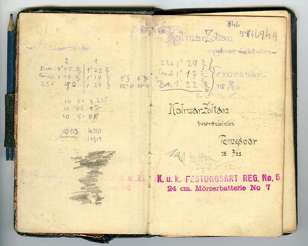 A Sugár út 16.a ház emléktáblája szövegéhez szükséges adatgyűjtés során találkoztam ifjabb Kalmár Zoltánnal, a tábla állíttatójával. A két világháború közötti Kanizsa legjelentősebb építési vállalkozójának fia megmutatta édesapja 1916-os naplóját, amelyet az olasz fronton vezetett. Abból aztán kiderült, hogy a műegyetemi diákként bevonult Kalmár közvetlen parancsnoka professzora, Zemplén Győző lett.