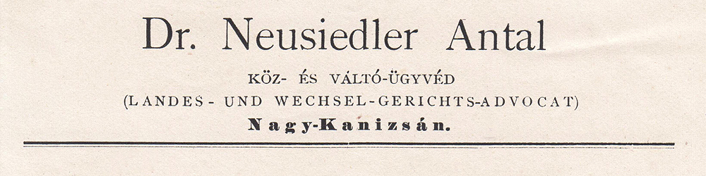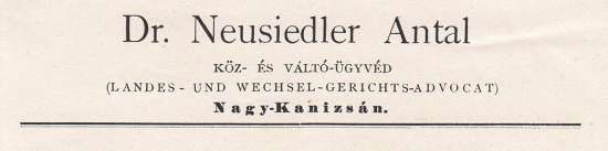 •Apja, Neusiedler Pál (1817-1891) mészáros, majd neves vendéglős (Zöldfa) 1840 tájékán költözött Kanizsára.
