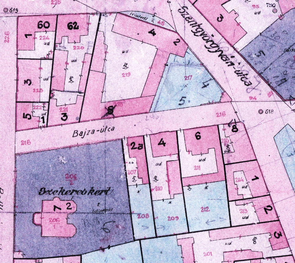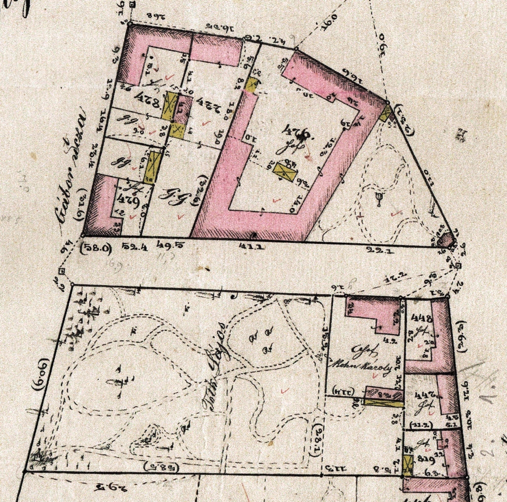 •Feltételezhető az is, hogy a Spánier által megszerzett teleknek része volt a Batthyány utca 1. számú háztól az 5. számú házig terjedő terület is.
