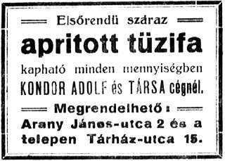 Az első világháború idején a Tárház utca végén (most a 15. és 15.a számú házak vannak ott) működtette azt Kondor Adolf és társa.