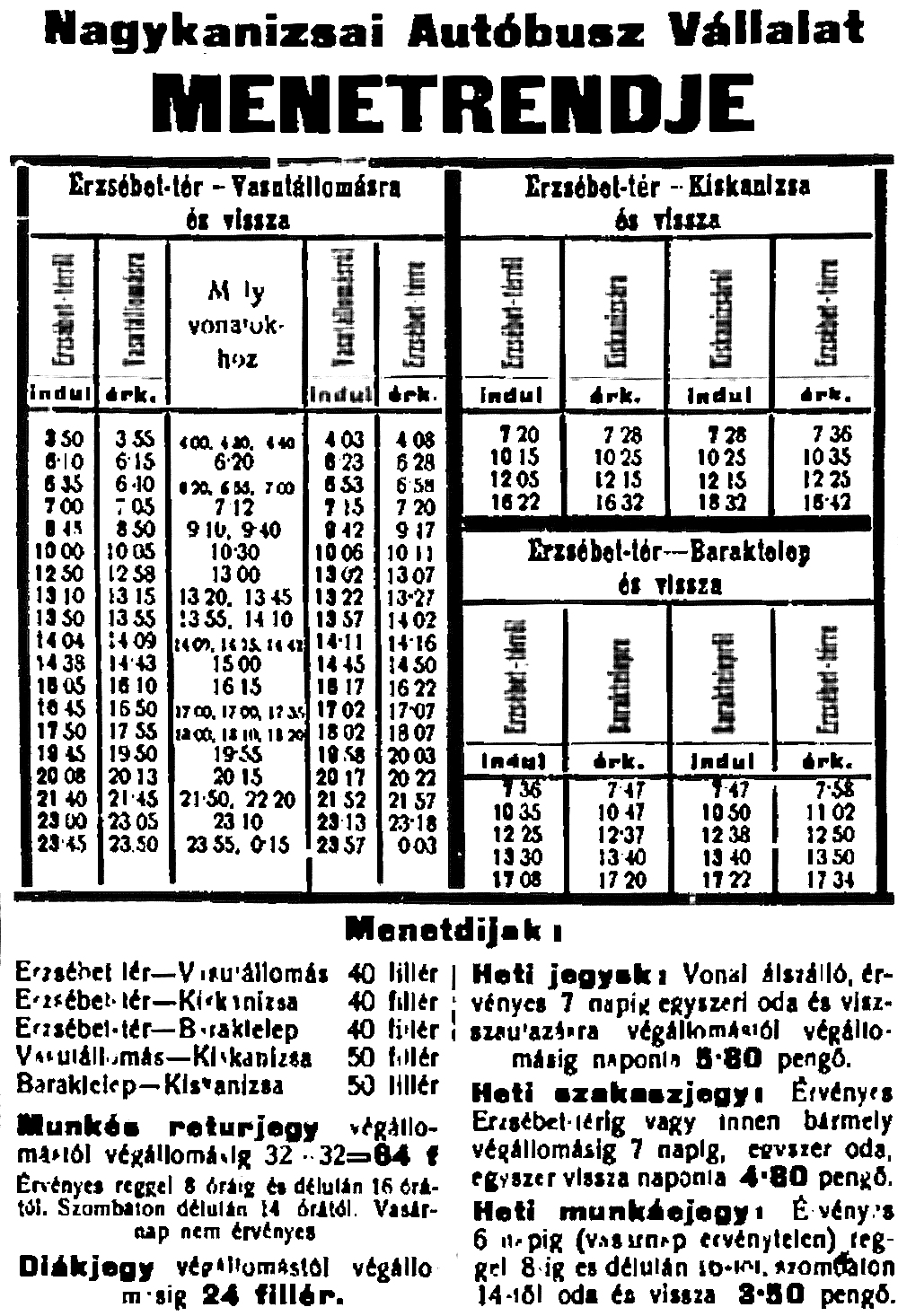 Az első menetrend 1927 februárjából