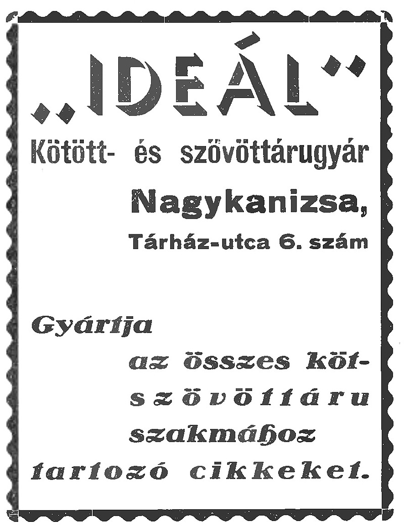 „Ideál kötőszövőgyár Nagykanizsa Strém és társai”,