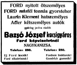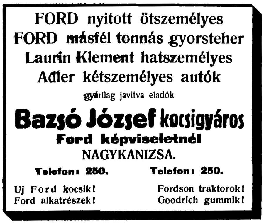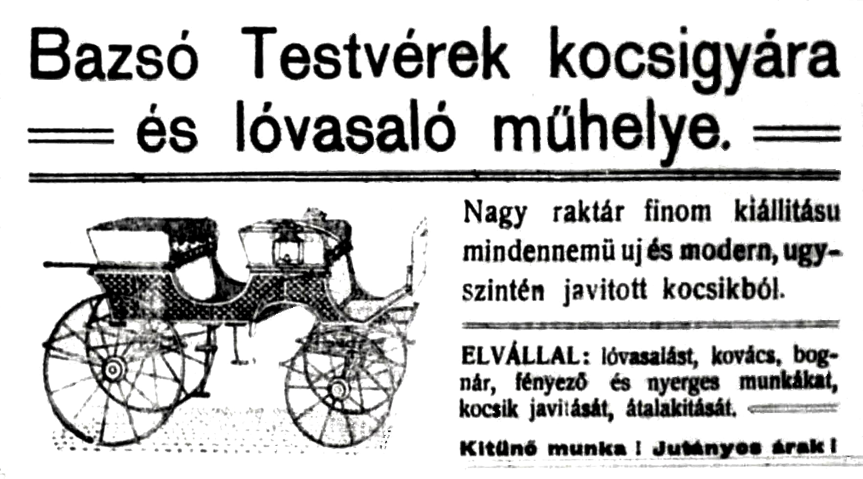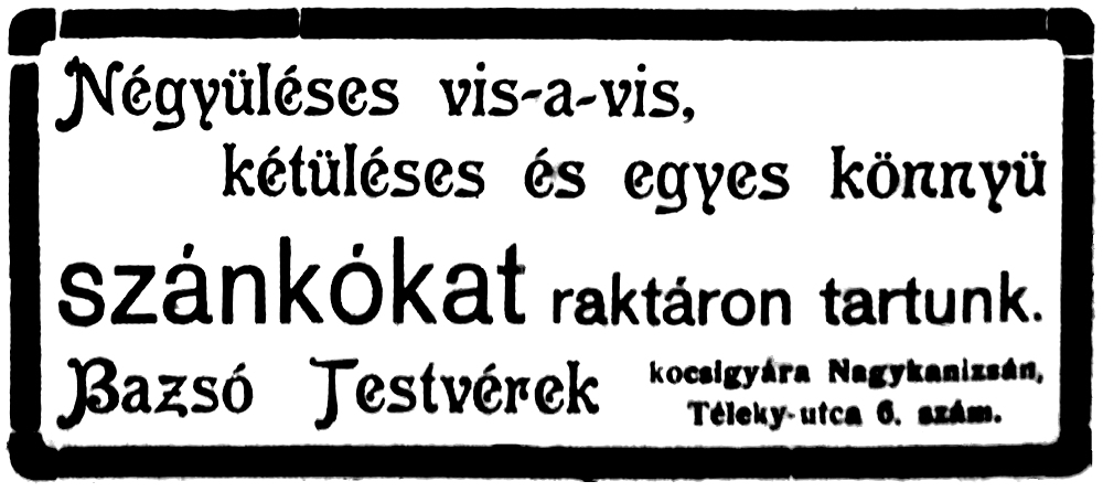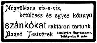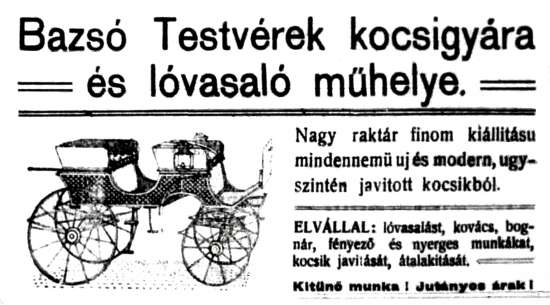 Bazsó József és Bazsó Sándor 1912-es hirdetése