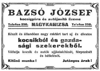 Bár Bazsó József kocsigyártó vállalkozása a cégbírósági bejegyzés szerint csak 1944-ben szűnt meg, az 1928 utáni időszakból nem találtam működésére utaló adatot.