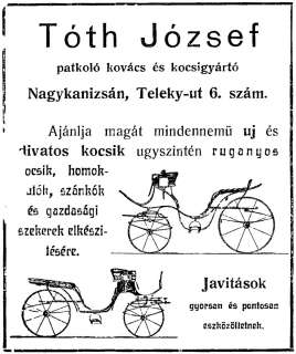•Bár átalakítva, de áll még* a ház, amelyben 1908-ig Tóth József (76. évében, 1922-ben halt meg), messze földön ismert kovács és kocsigyártó műhelye működött. A ház az 1860-as térképen már szerepel. Az „U” alakú épület teljesen elfoglalta az utcai oldalt, viszont nem nyúlt mélyen az udvarba.