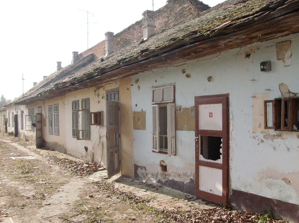 A 2012 elején még álló, kiürített épületek északról és délről