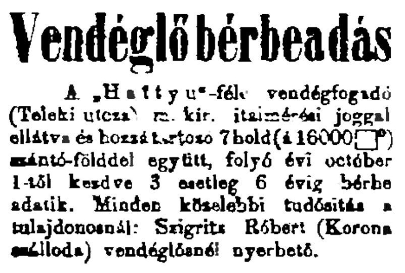 (A Teleki út 2. számú sarokházat Tuboly-házként említi egy 1886-os újságcikk.)