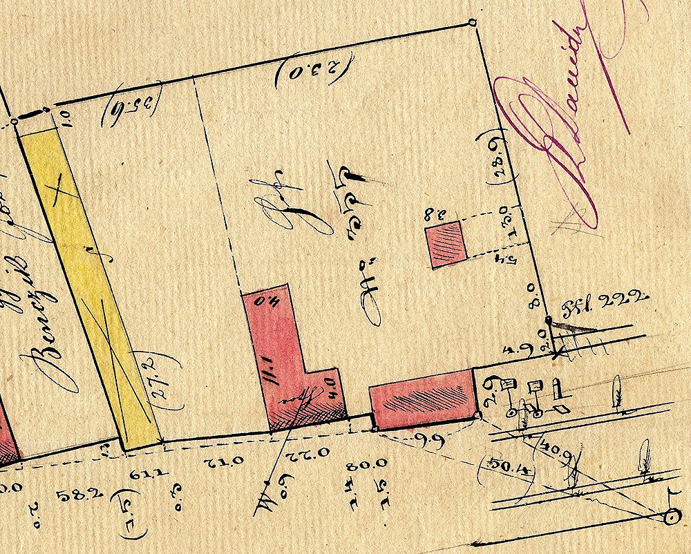 (A kocsiszín [F] déli és nyugati oldala.)