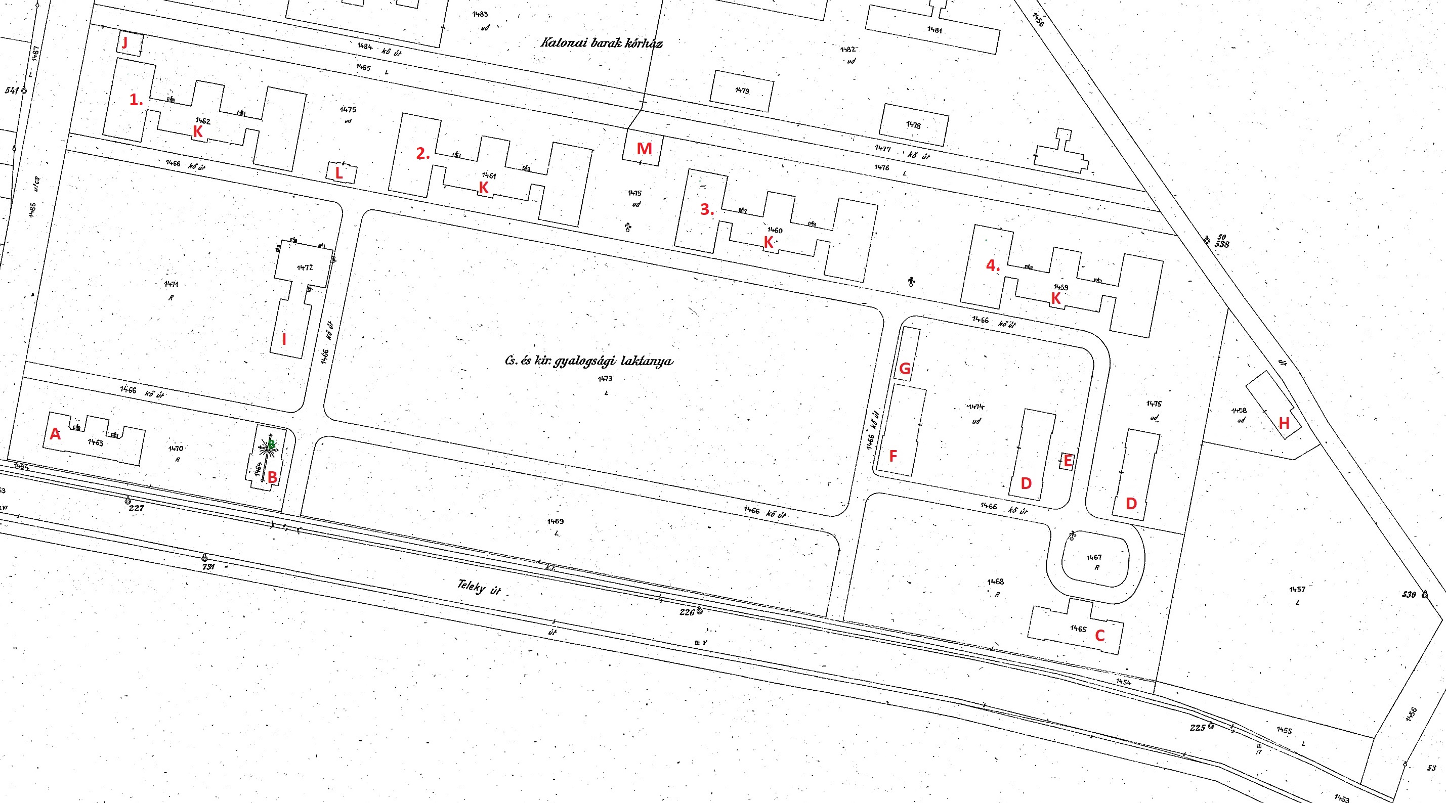 •A laktanya mögött, 82000 négyzetméteren, szintén 1915-ben – húsz, fából készült barakkal – katonai kórház létesült.