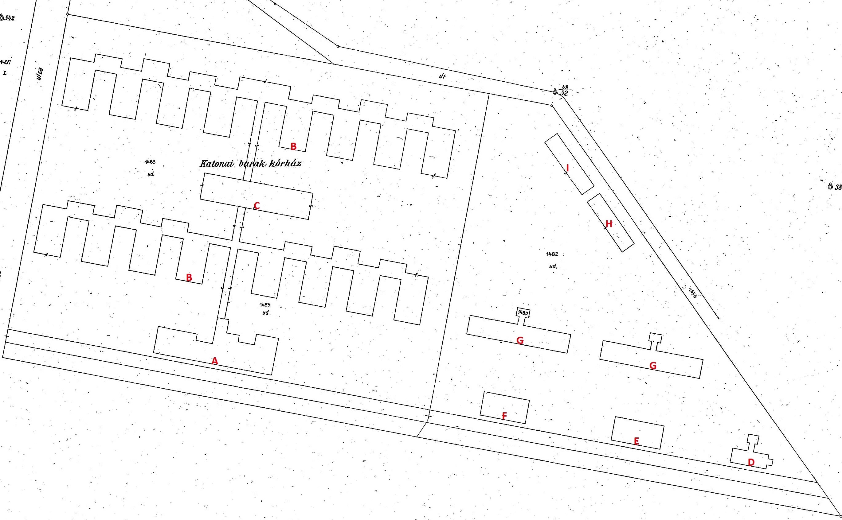 A kórház az 1917-es térképen