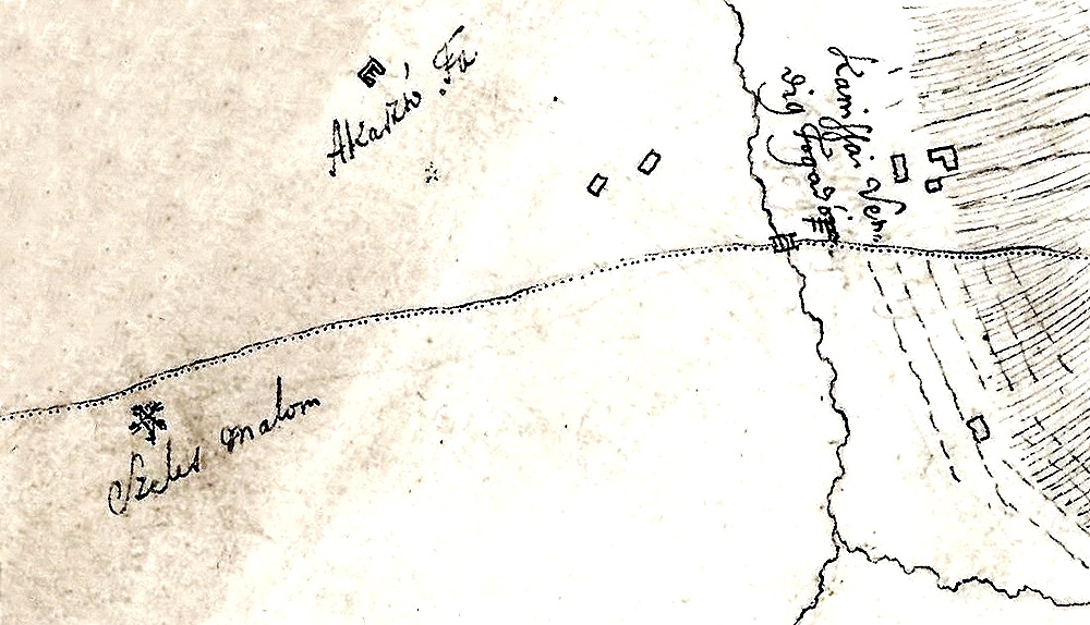 (Az országút mentén jelzett nyárfákat 1898 végén vágták ki.)