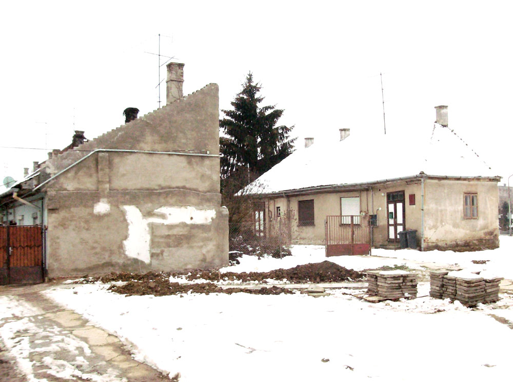 *Az utca mentén álló ház 2009 szeptemberében lebontásra került. Egy „pecsétes” téglájának fényképét a Kossuth tér 7. számú épületről szóló részben láthatja. A telek hátsó feléről 2014 novemberében távolították el az építményeket. A következő felvételek innen származó téglákról készültek. Továbbiakat talál az Ady utca 00. és a Fő út 11. című részekben.