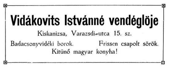 1910-es haláláig (76 esztendős volt akkor) özvegy Horváth Jánosné birtokolta az épületet; a kocsmát is ő működtette.