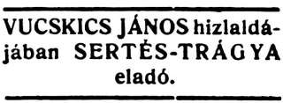 •A Vágóhídi úton, közvetlenül a vasútvonal előtt, az út déli oldalán 1887-ben létesítette ezer sertést befogadó hizlaldáját Vucskics János.