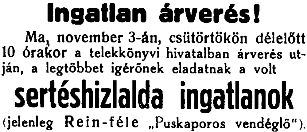 (Rein Ernő – 1878-1944 – egyike volt a város mészárosainak. Vállalkozását 1928-ban fia, Andor vette át.)