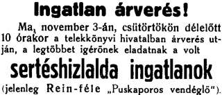 Mindezek ellenére az év végén meghirdették az ingatlan árveréses értékesítését.